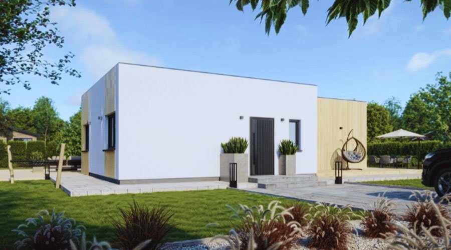 - Estructura de la Vivienda: Mediante estructura de entramado ligero de madera de abeto de sección 120x40 mm revestida exteriormente con sistema Sate o similar con lana de roca+ tablero OSB en su cara interior.